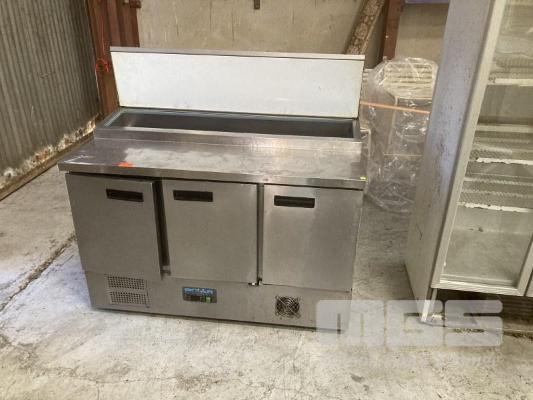 PREP FRIDGE, POLAR G665-A, 3 DOOR, 140cm, STAINLESS STEEL CASED, 240V