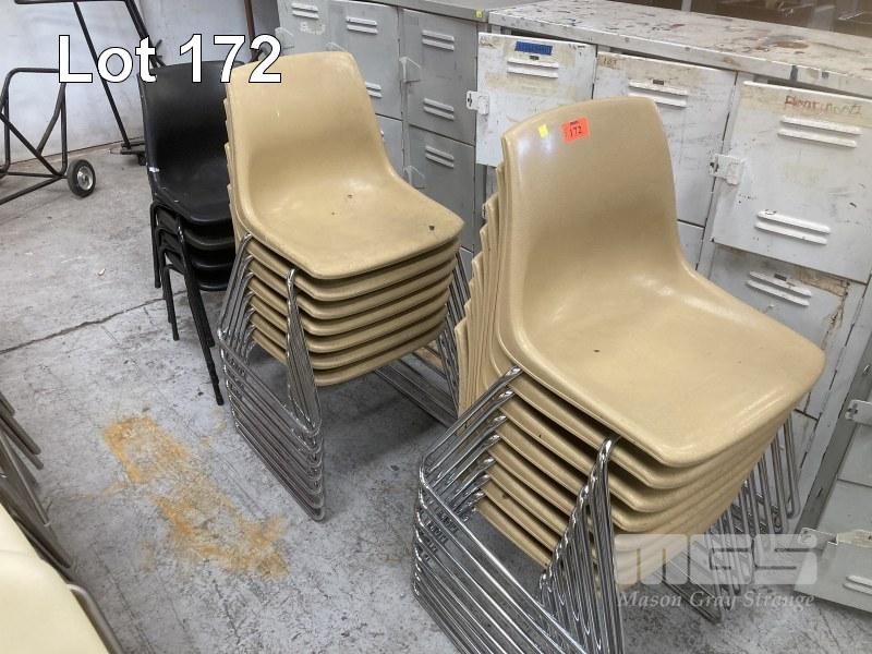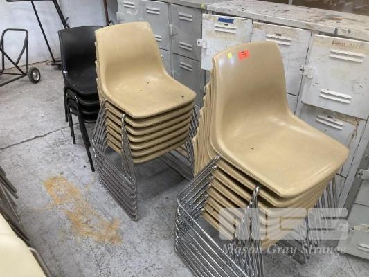 19 X STACKING PVC CHAIRS, 15 BROWN & 4 BLACK