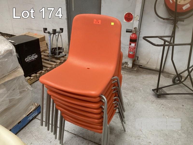 9 X STACKING PVC OUTDOOR CHAIRS, ORANGE