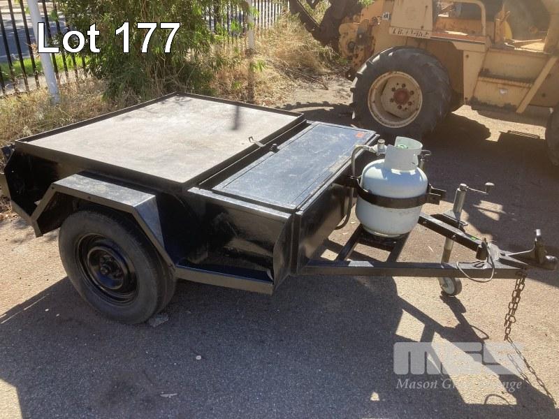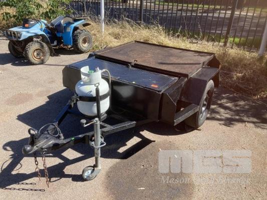 BBQ TRAILER, 5x4', SINGLE AXLE REG: TAT 749 WITH 4 BURNER HOT PLATE COLD BOX GAS BOTTLE BALL HITCH (NO REG PAPERS)