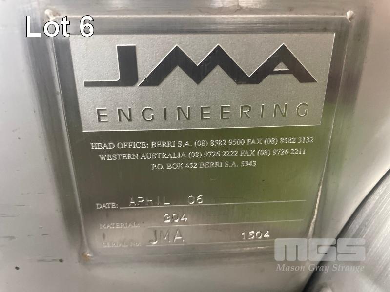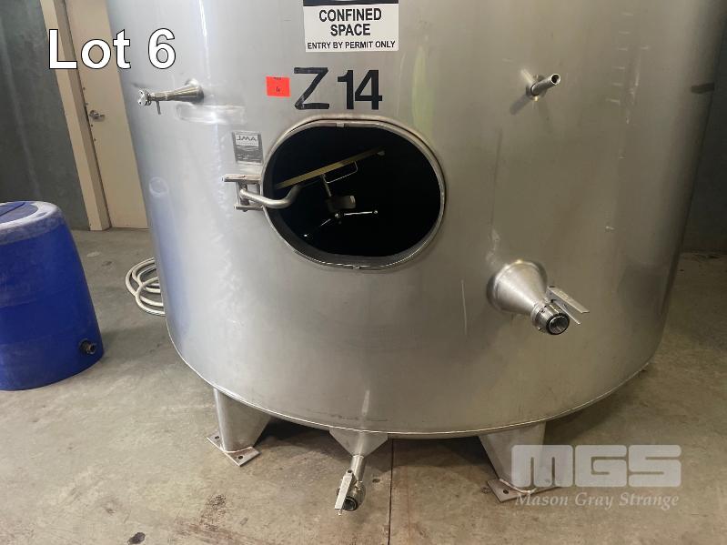 2006 STAINLESS STEEL WINE TANK, JMA ENGINEERING 15kl APPROX SUPPORT LEG BASE, VALVES, COOLING PLATE THERMOMETER POCKET & LADDER HOOK ID NO: Z14