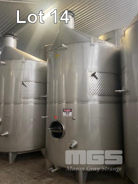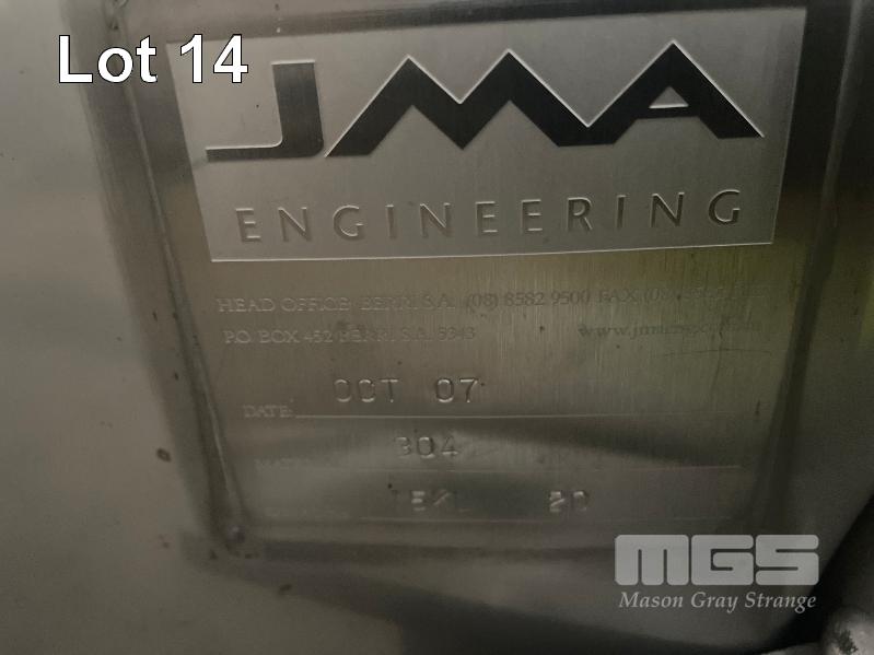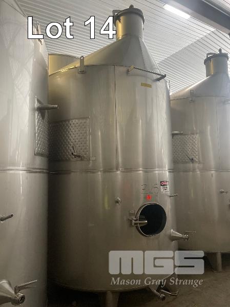 2007 STAINLESS STEEL WINE TANK, JMA ENGINEERING 15kl APPROX SUPPORT LEG BASE, VALVES, COOLING PLATE THERMOMETER POCKET & LADDER HOOK ID NO: Z25