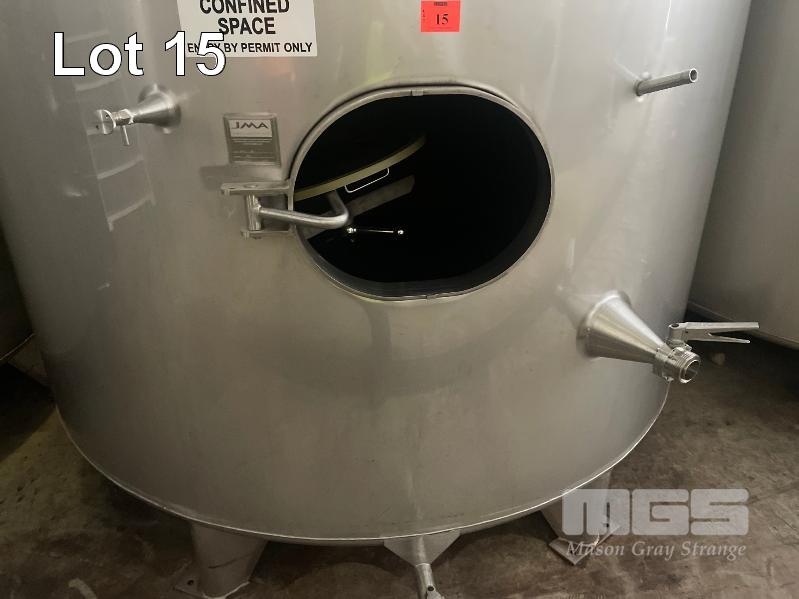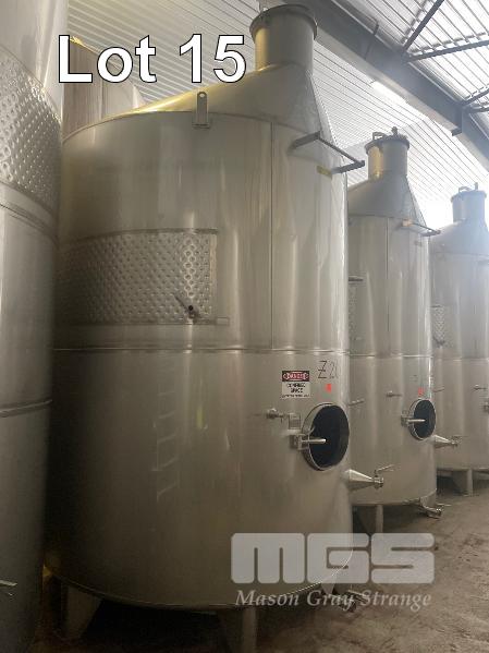 2006 STAINLESS STEEL WINE TANK, JMA ENGINEERING 15kl APPROX SUPPORT LEG BASE, VALVES, COOLING PLATE THERMOMETER POCKET & LADDER HOOK ID NO: Z20