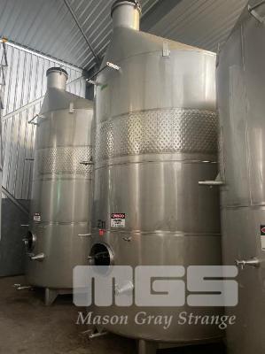 2006 STAINLESS STEEL WINE TANK, JMA ENGINEERING 20kl APPROX SUPPORT LEG BASE, VALVES, COOLING PLATE THERMOMETER POCKET & LADDER HOOK ID NO: Z11 (WILL HAVE TO BE LAID OVER IN THE WAREHOUSE TO REMOVE BY CRANE, AS THEY WILL NOT COME OUT THE DOOR VERTICALLY)