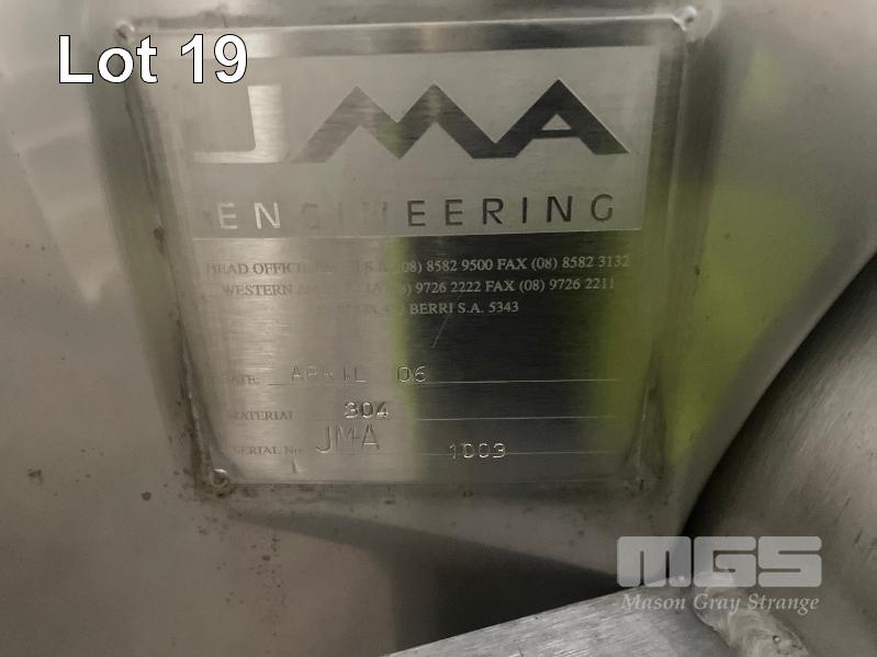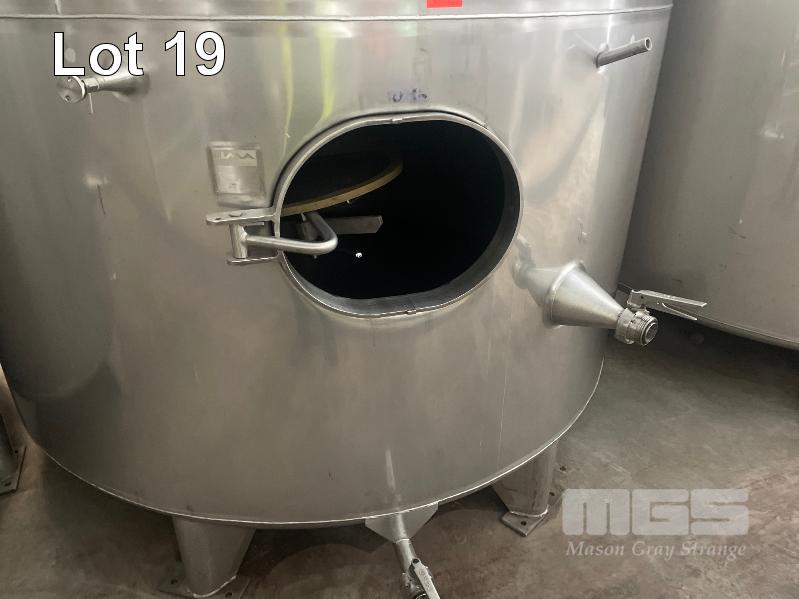 2006 STAINLESS STEEL WINE TANK, JMA ENGINEERING 10kl APPROX SUPPORT LEG BASE, VALVES, COOLING PLATE THERMOMETER POCKET & LADDER HOOK ID NO: Z19