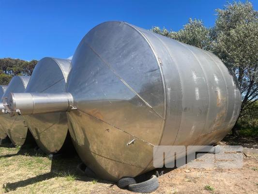 STAINLESS STEEL HOLDING TANK 50,000 LITRE APPROX WITH COOLING PLATE, VERTICAL, FLAT BOTTOM, INSPECTION HATCH, BOTTOM VALVES, RAISED LID & HATCH 5000mm (H) & 1100mm RAISED LID 3800mm DIAMETER NO: 45