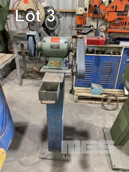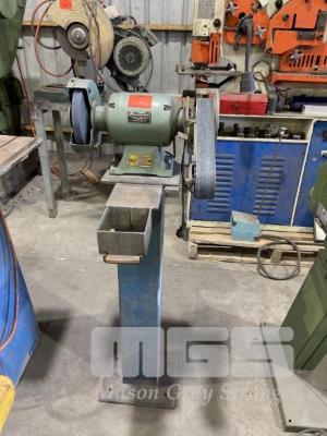 ABBOTT & ASHLEY 8 INCH DOUBLE END BENCH GRINDER WITH LINISHER ATTACHMENT, ON PEDESTAL 240v