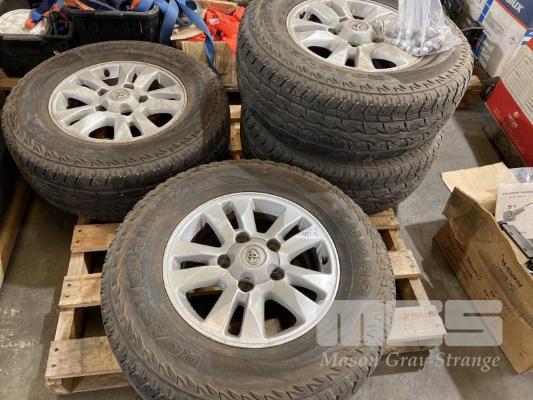 4 x TOYOTA 5 STUD ALLOY RIMS & TIRES, 285.65 R17