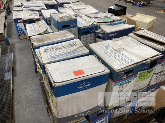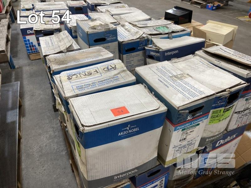 CONTENTS OF 2 PALLETS, POWDER COATING, VARIOUS COLOURS, APPROX 48 PART BOXES
