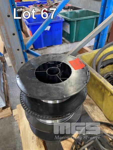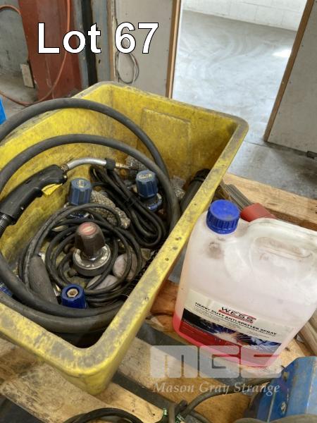 ASSORTED MIG WIRE, HAND PIECE WITH FEED, OXY ACC GAUGES, WIRE & TOOL BOX