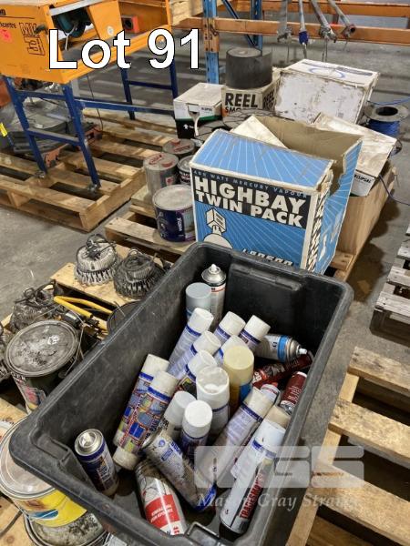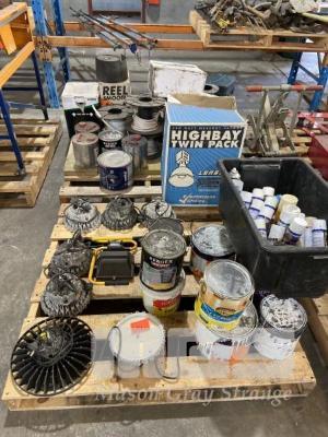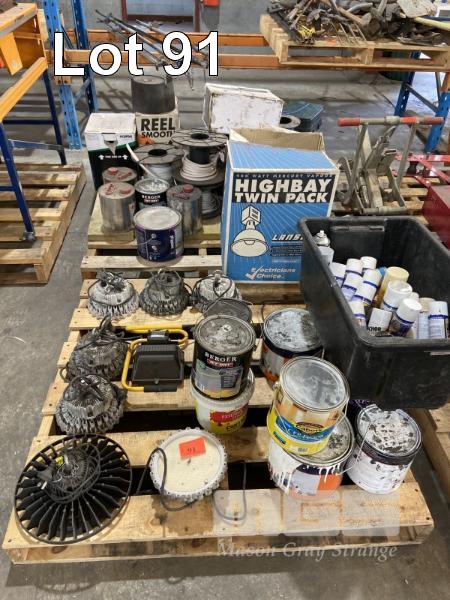 CONTENTS OF 2 PALLETS, LED LIGHTS, CANS OF PAINT, VARIOUS ELECTRICAL CABLE, DATA CABLE ETC.