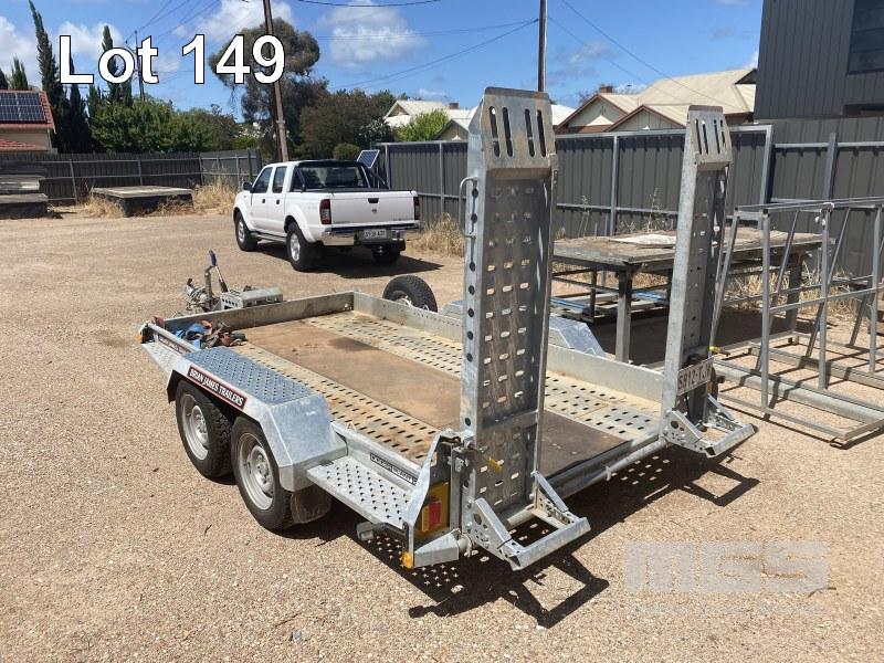 BRIAN JAMES, FLATBED TRAILER, DUAL AXLE DIGGER PLAT SERIES 2, PLANT TRAILER, REGO: S812TJK, VIN: SJB543GBPNDO46194, GTM: 3500kg, OVERRIDE BRAKES, WITH BRAKE AWAY CABLE, SPARE WHEEL ,JOCKEY WHEEL, FOLD DOWN RAMPS, GALV CHASSIS