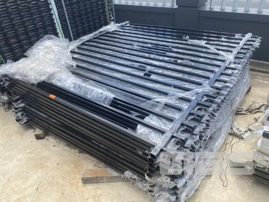13 x BLACK POWDER COATED TUBE FENCE PANELS, 2400 x 2400mm