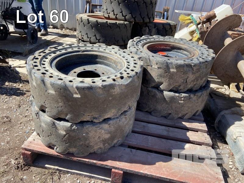 SET 4 BOBCAT TYRES & RIMS, (SOLID)