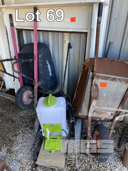 2 x WHEEL BARROWS & WEED SPRAYER