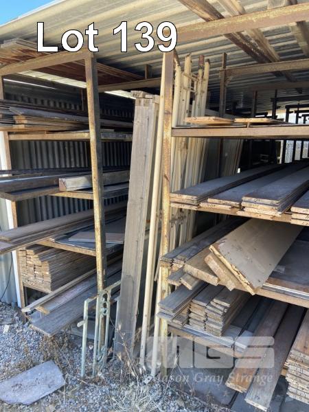 LARGE QUANTITY T&G TIMBERS, ASSORTED IN RACKS, NOT INCLUDING RACKS
