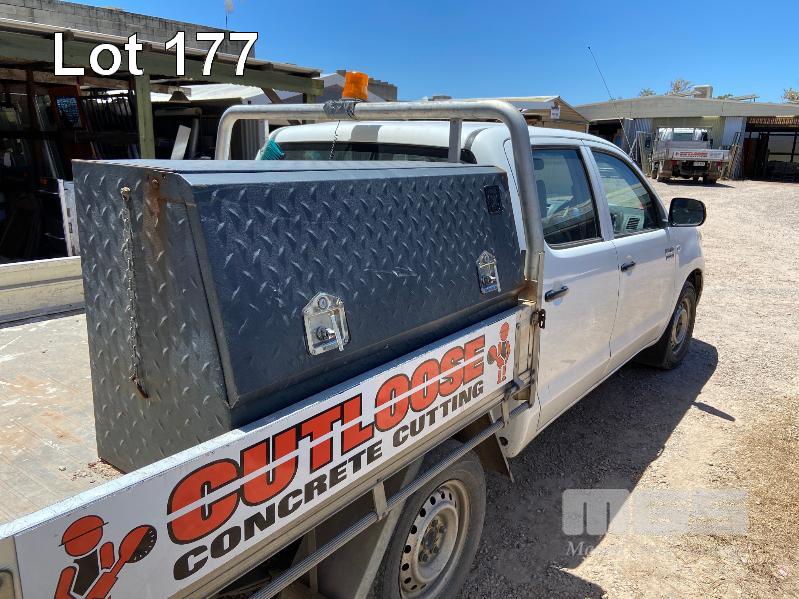 2010 TOYOTA HILUX KUN16R DUAL CAB TRAYTOP UTILITY 4x2 REG: S604 AHD VIN: MR0EZ12G904009060 ODO: 198,234kms SHOWING 3 LITRE, TURBO DIESEL, 4x2 ALLOY TRAY TOP TOOL BOX & TOW PACK