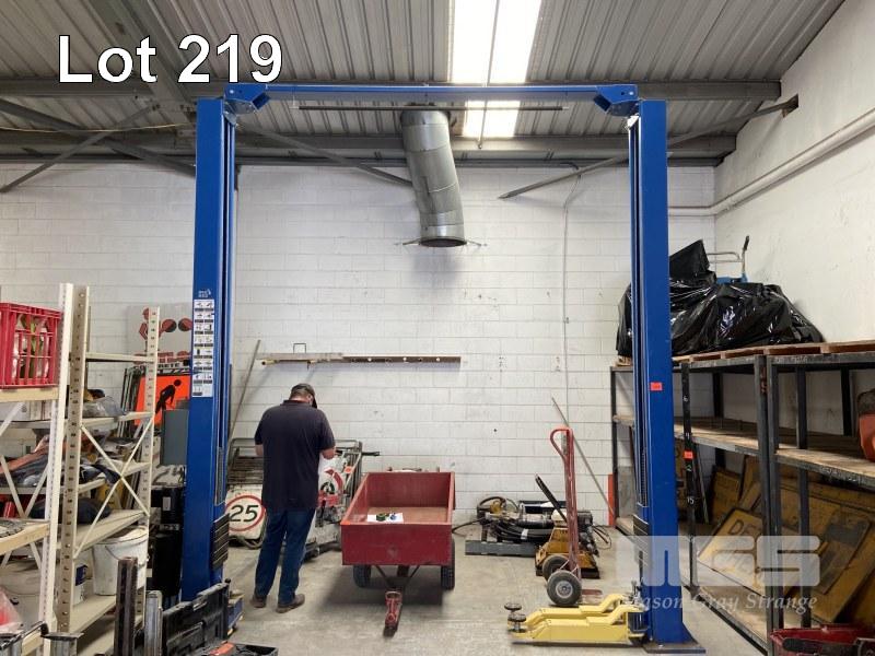 VEHICLE HOIST, BIG RED 2 POST CLEAR TWIN RAIL HYDRAULIC MOD: OJY-235DE 3,500kg 240V