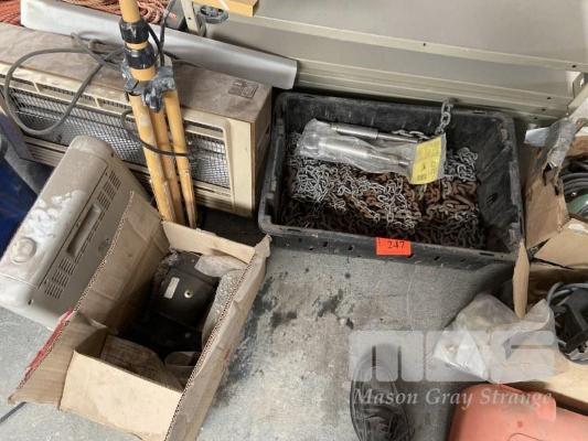 ASSORTED CHAINS, ROPE, HEATERS & LEADLIGHT, 1 x TUB