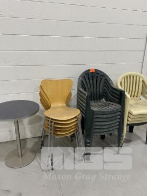 18X ASSORTED CHAIRS W/ ROUND TABLE