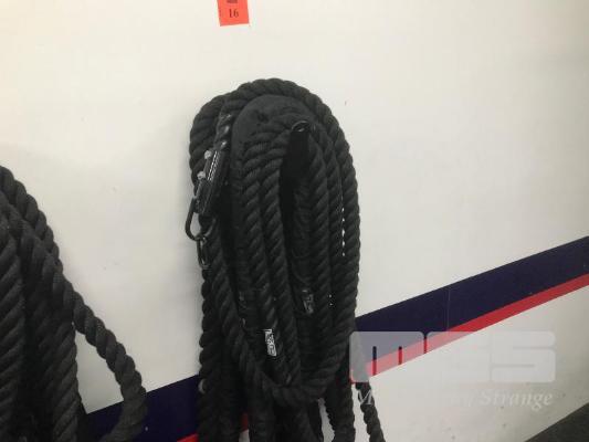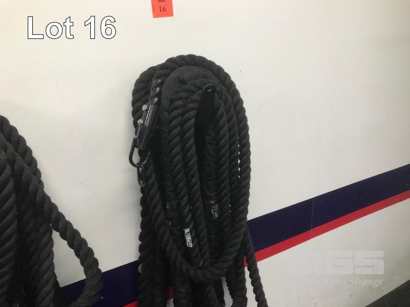 2 X LENGTHS OF HEAVY DUTY CLIMBING & HEAVY BATTLE ROPES WITH WALL MOUNTING FITTINGS