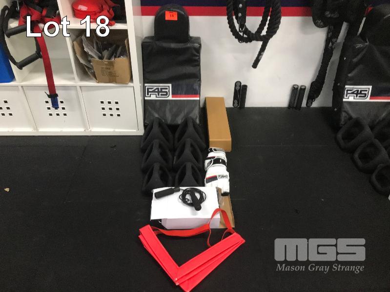 PADDED MMA SHIELD & GLOVES, 6 X Y-BELLS, 2 X LARGE, 2 X MEDIUM, 2 X SMALL, EXTENSION BAND & KIT WITH HANDLES, AGILITY SQUARE & SKIPPING ROPE