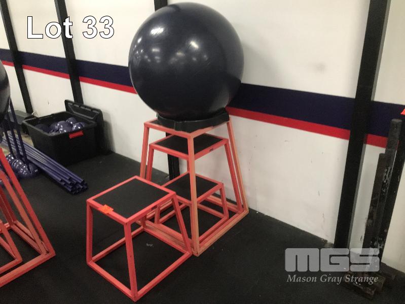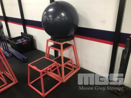 AGILITY BOXES, NEST OF 4 GRADUATED, STEEL FRAMED, RUBBER TOPPED, WITH SWISS BALL & STAND