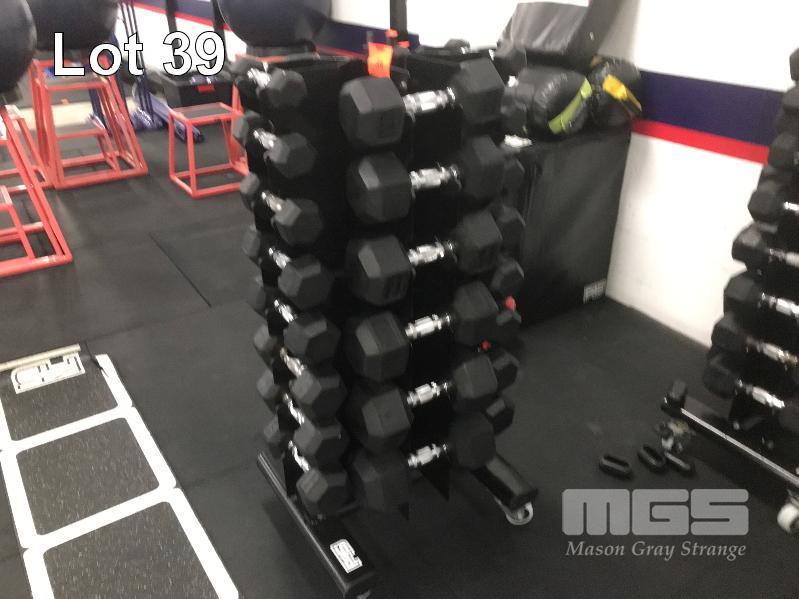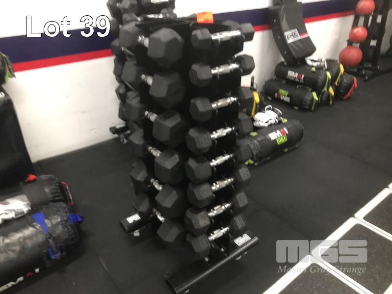 DUMBBELL SET ON MOBILE STAND, PAIRS 1-10kg IN 1kg INCREMENTS & PAIRS OF 12.5kg, 15kg, 17.5kg & 20kg