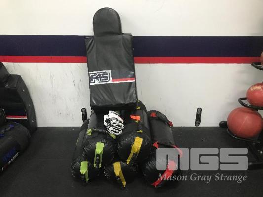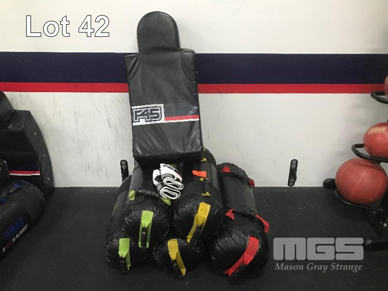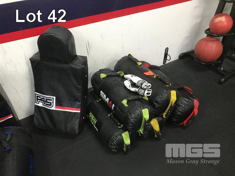 GYM EQUIPMENT, MMA SHIELD & GLOVES, SET OF 5 SANDBAGS, 2 X 10kg, 2 X 15kg, 1 X 20kg