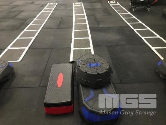 2 X PLASTIC STEP-UPS WITH PAIR OF EXTRA HEIGHT BASES & RUBBER AGILITY LADDER