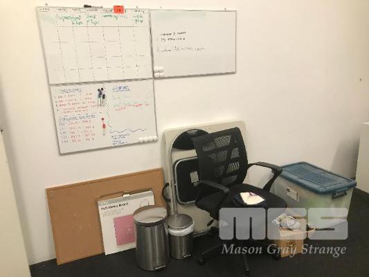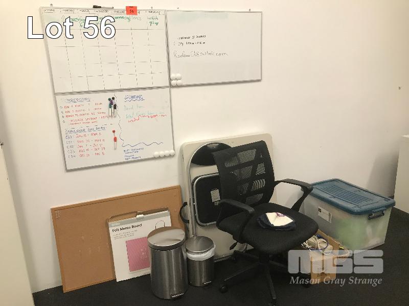WHITEBOARDS, TRESTLE TABLE, GAS LIFT CHAIR, ELECRICAL CABLE & CHRISTMAS DECORATIONS