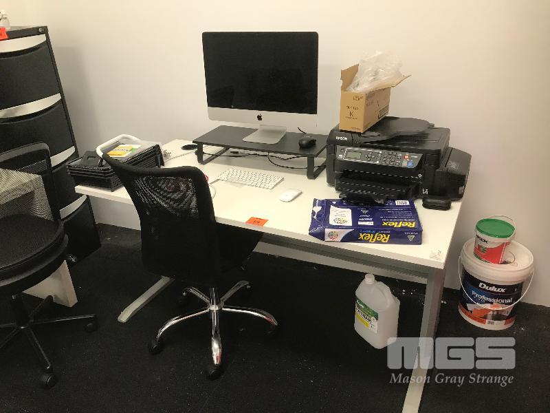 WHITE DESK & GAS LIFT CHAIR (COMPUTER & PRINTER NOT INCLUDED)