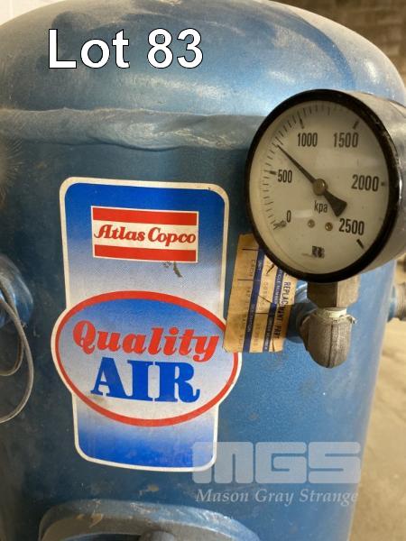 AIR RECEIVER TANK, ATLAS COPCO VERTICAL MOUNT ON LEGS 1500 (H) x 350mm (DIA)