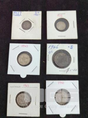 6 X PRE DECIMAL COINS INC 5 X SIXPENCE 2 X 1943, 1927, 1940 & 1943 & 1946 SHILLING