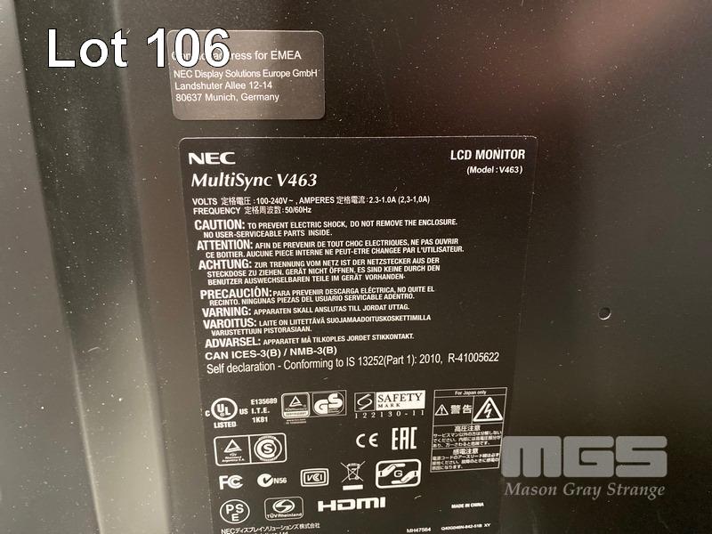 MONITOR, NEC MULTISYNC V463 46" COMMERCIAL LCD DISPLAY, WITH BUILT-IN PC MODULE, CORE i5 4400E @ 2.7GHz, 4GB RAM, 64GB SSD (NO REMOTE, NO STAND) S/N:49011940NB