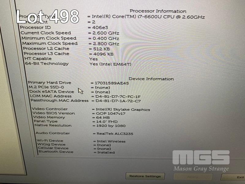 LAPTOP, DELL LATITUDE E7470, CORE i7 6600U (6TH GEN) @ 2.6GHz, 16GB DDR4 RAM, 512GB M.2 SSD, 14" WIDESCREEN (1920x1080), INTEL SKYLAKE GRAPHICS, Wi-Fi, BLUETOOTH, WINDOWS 10 HOME INSTALLED, DOCKING STATION & POWER SUPPLY S/N:78YDWF2