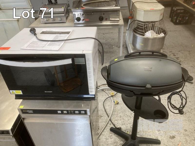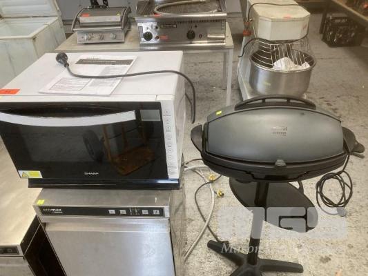 SHARP FLATBED MICROWAVE WITH GRILL, 240V & MISTRAL OUTDOOR ELECTRIC GRILL, 240V