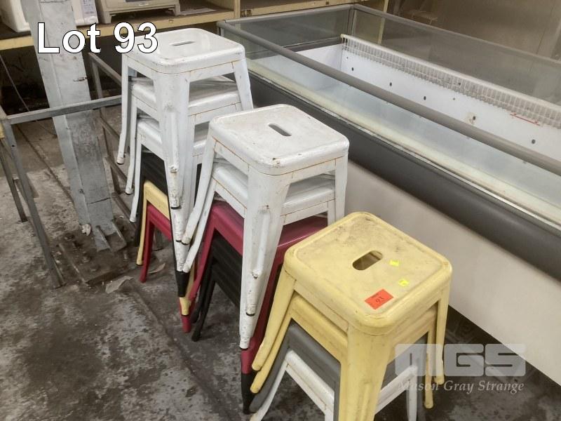 15 x LOWLINE STOOLS, METAL FRAME, ASSORTED COLOURS