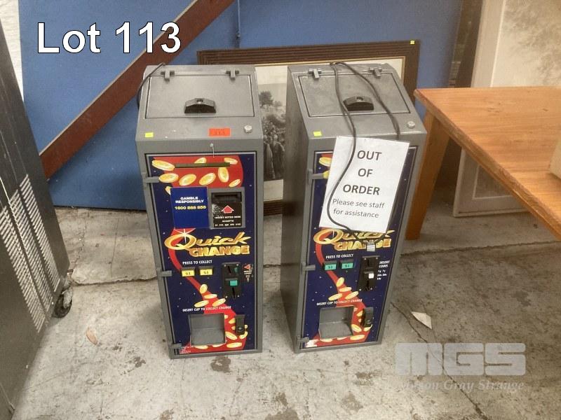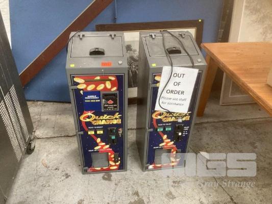 2 x COIN CHANGE MACHINES, 240V (NO KEYS, 1 x OUT OF ORDER))