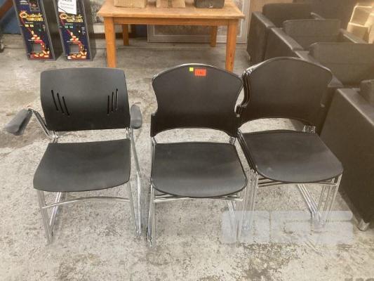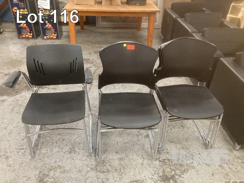 8 x ASSORTED BLACK PVC STACKING CHAIRS