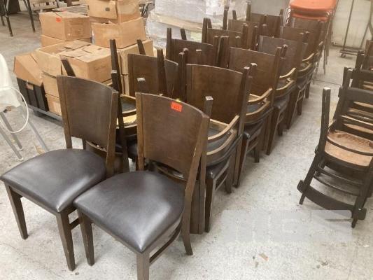 22 x CAFE CHAIRS, BLACK VINYL PADDED SEAT, TIMBER FRAME