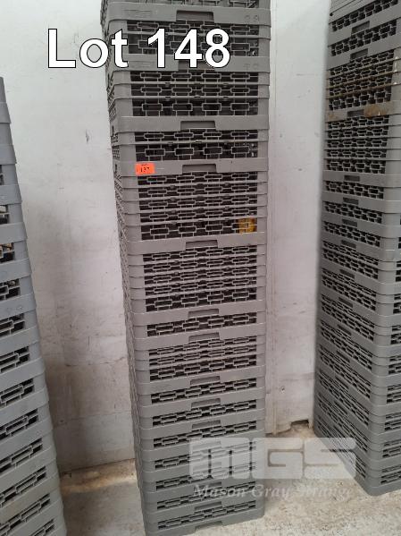 15 X NSF CERTIFIED 25-COMPARTMENT DISHWASHER GLASS TRAYS WITH EXTENDERS. IN GREY. 500 X 500 MM.