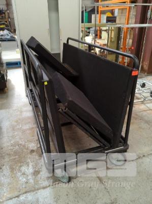LARGE HEAVY DUTY TABLE TROLLEY WITH CHANGEABLE SIDE BARS. 85 X 195 X 116 CM (W D H).