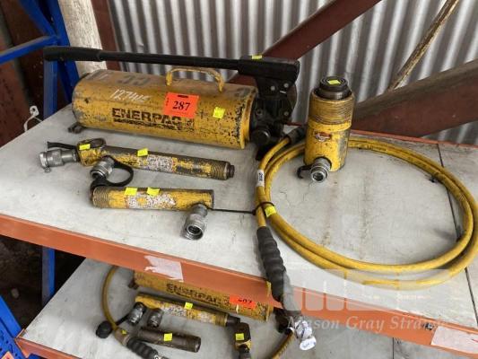 ENERPAC ULTIMA HYDRAULIC HAND PUMP WITH HOSE & 4 x HYDRAULIC RAMS