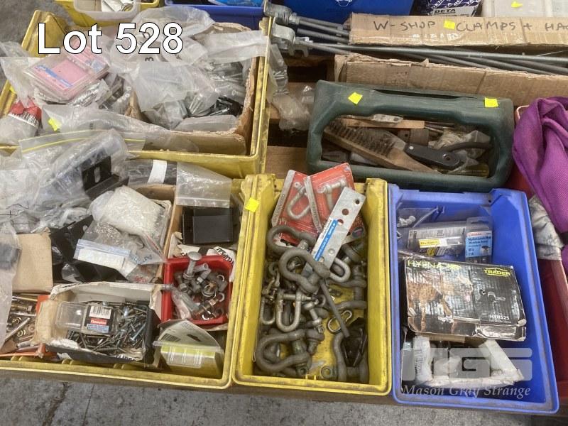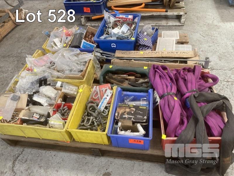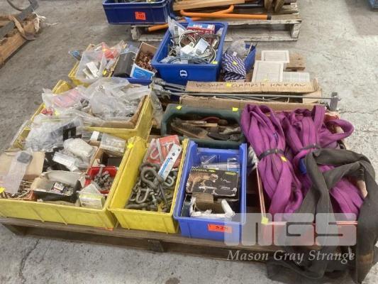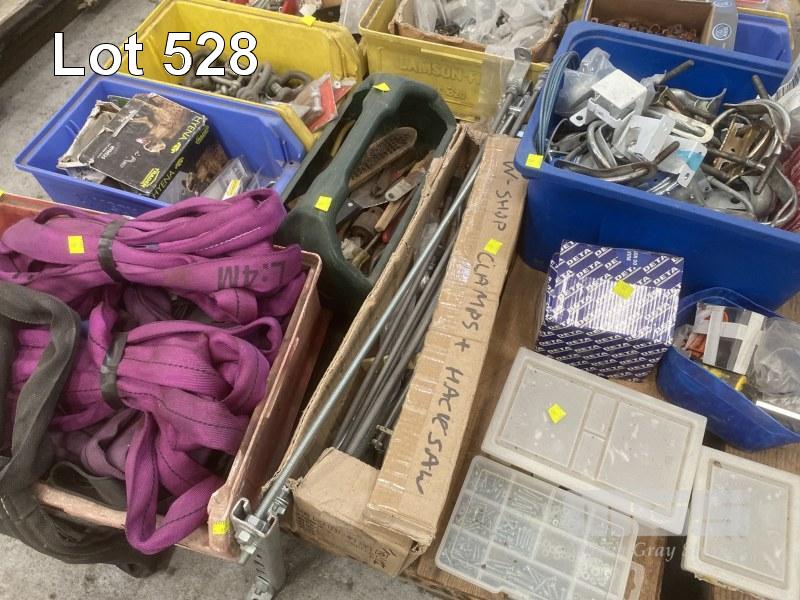 QUANTITY FASTENERS, LIFTING SLINGS, TOOLS, CLAMPS, FITTINGS, D-SHACKLES, ETC,