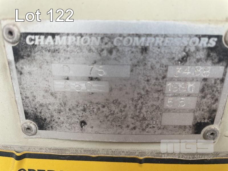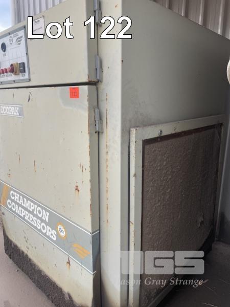 ROTARY SCREW AIR COMPRESSOR, CHAMPION MOD: D75 HOURS: 52,798 415 LITRE