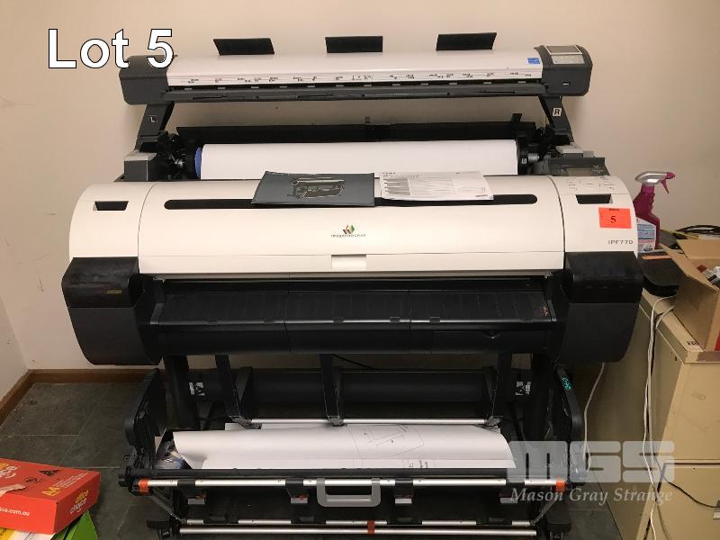 CANON IMAGE PROGRAF LARGE FORMAT PRINTER/SCANNER MOD: IPF770 WITH SPARE INK,PAPER & BOOKS & LAMINATE PLAN TABLE