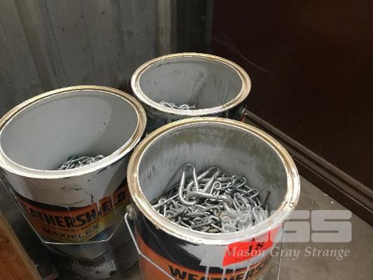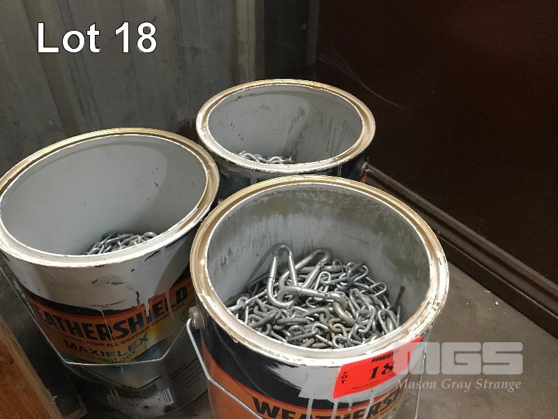 3 x PAINT CANS & CONTENTS ASSORTED LENGTHS CHAIN & CARABINERS