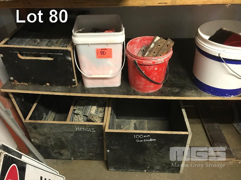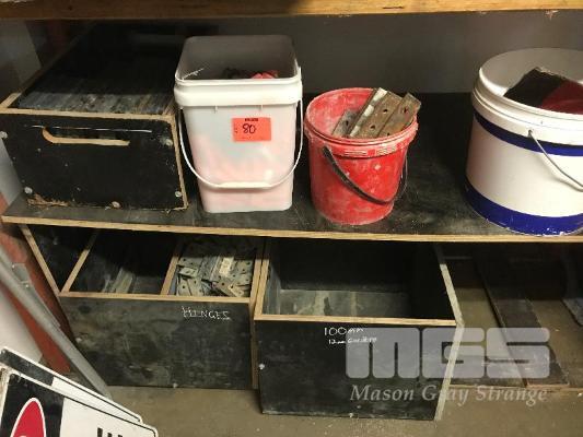 ASSORTED SPACERS/PACKES, ASSORTED STEEL FASTENERS, BRACKETS & LARGE QUANTITY HINGES