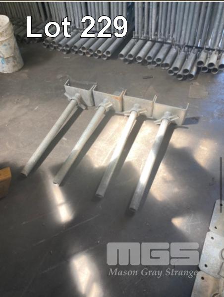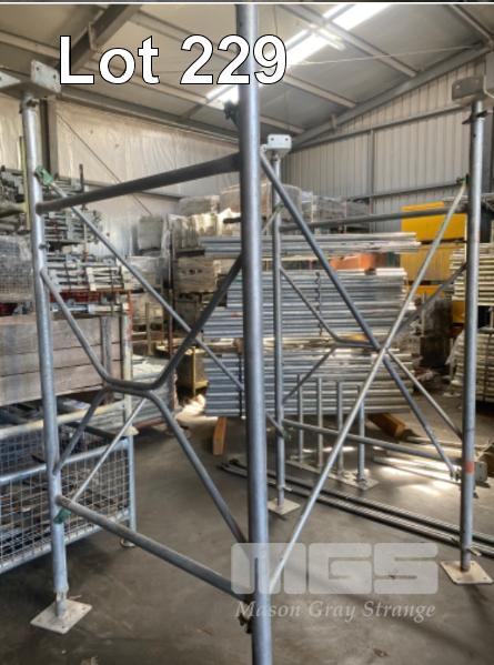 10 X V FRAME GALVANISED STEEL FORMWORK SCAFFOLD SHORING KITS, EACH COMPRISING: 20 FRAMES @ 2100mm 40 X FLAT JACK BASES, SCREW ADJUSTABLE, 600mm 40 X U-HEAD TOPS SCREW ADJUSTABLE, 600mm 20 X BRACES @ 1500mm ASSEMBLED SIZE 1200X1500/1800X 2100mm